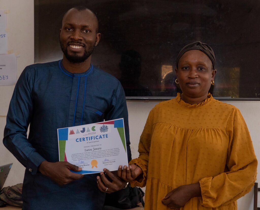 The workshop, titled “Visualizing the Crisis: Climate Action through the Lens,” was delivered in partnership with the Media Academy for Journalism and Communication (MAJaC) and funded by the British High Commission in The Gambia.